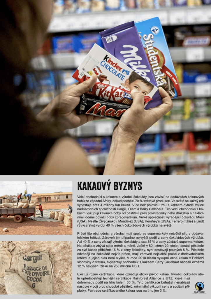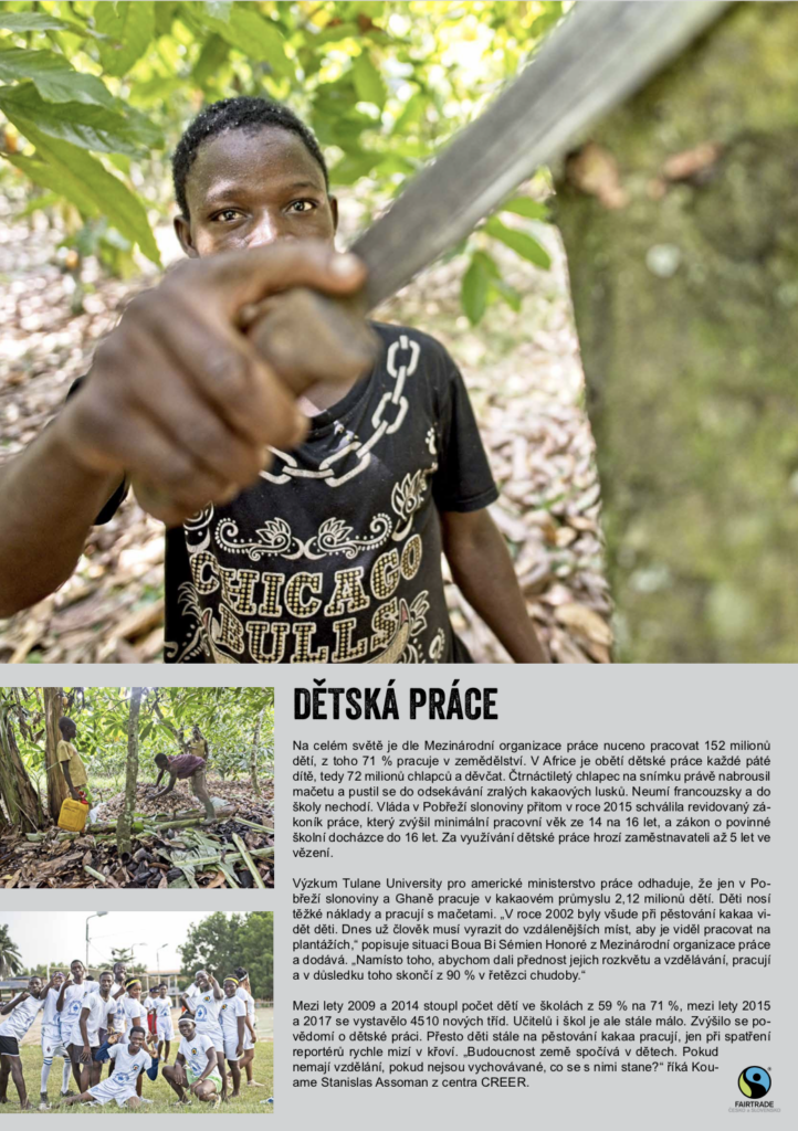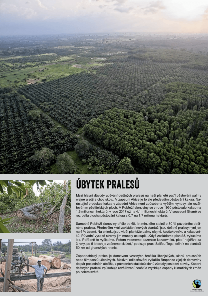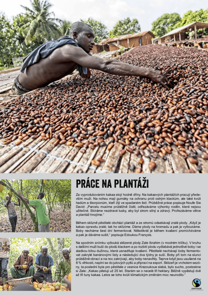 K výstavě si můžete také stáhnout vzdělávací lekci nebo promítnout mezinárodně oceněný dokument Ve stínu kakaovníku. Více informací o tématu pěstování kakaa najdete na naší stránce v přehledu komodit www.fairtrade.cz/kakao.
