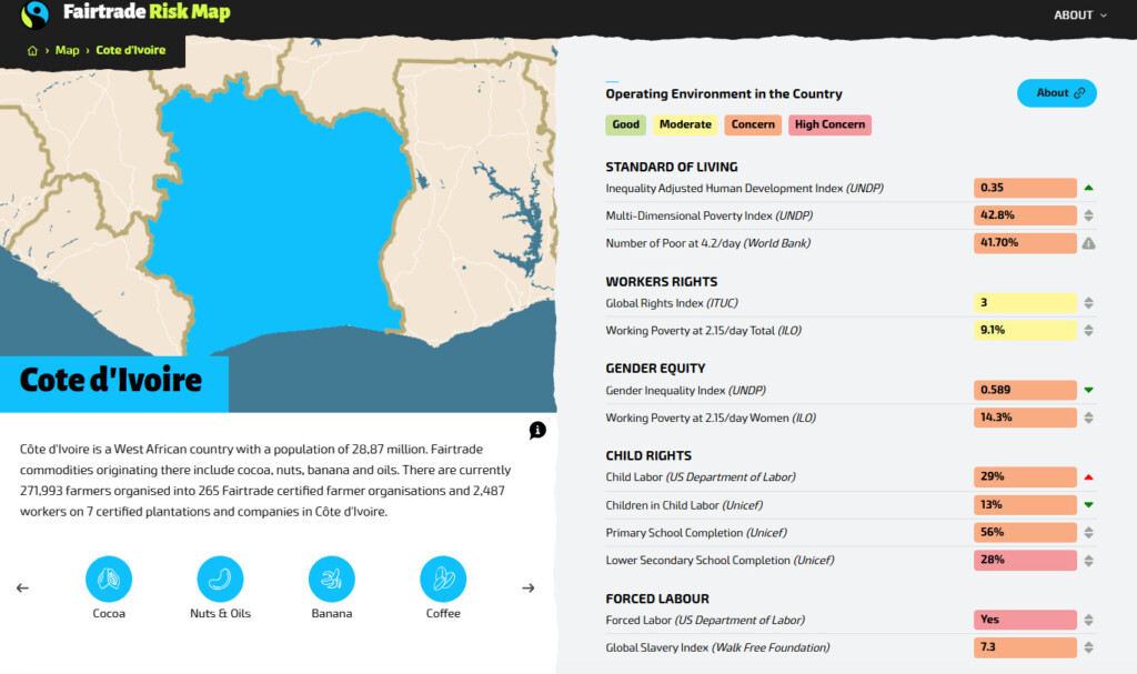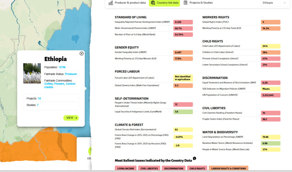 Fairtradová mapa rizik podporuje všechny účastníky v globálních dodavatelských řetězcích – pěstitele, družstva, maloobchodníky, značky – při posuzování jejich rizik v oblasti lidských práv a životního prostředí.