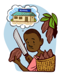 - Protože si pěstitelé často nemohou dovolit zaplatit dospělé dělníky na práci na kakaových plantážích, využívají tu nejlevnější dostupnou pracovní sílu: děti. Nejčastěji vlastní děti, které se pak kvůli pomoci na plantážích nemohou vzdělávat. Podle výzkumu Chicagské univerzity pro americké ministerstvo práce z roku 2019 pracují jenom v Pobřeží slonoviny a v Ghaně v kakaovém průmyslu víc než 2 miliony dětí. Na plantážích nosí těžké náklady a pracují s mačetami. Podívejte se na dokumentární film Ve stínu kakaovníku, který je dostupný na Youtube i na iVysílání České televize. Zdarma si také můžete objednat naši výstavu Cena kakaa, která ukazuje cenu levného kakaa – původní deštný prales je prakticky vykácen a pěstitelé žijí v chudobě.