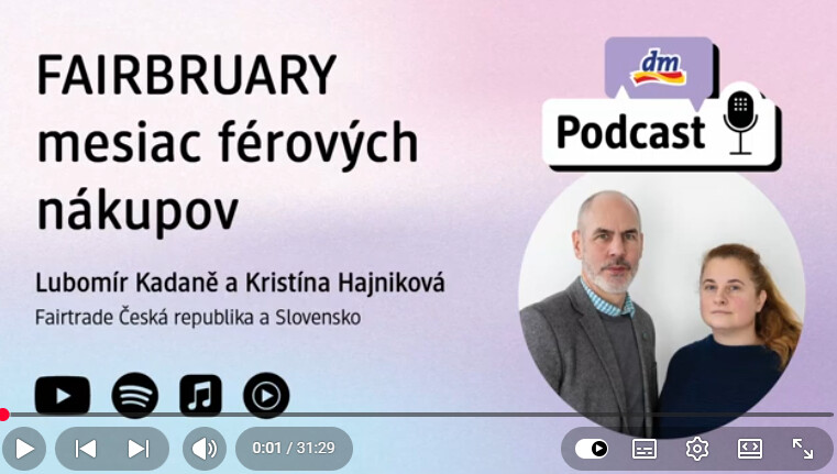 „Je důležité si uvědomit, že za každým produktem, který kupujeme v obchodě, stojí člověk, který jej vypěstoval a který by měl být za svou práci spravedlivě odměněn. “ Poslechněte si podcast s Lubomírem Kadaně a Kristínou Hajnikovou z Fairtrade Česká republika a Slovensko. YouTube, Spotify