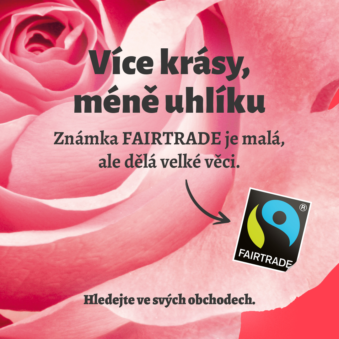 Naše dlouhodobá kampaň “FAIRTRADE. Malá známka, ale dělá velké věci” staví na kontrastech. V případě květin jsme zvolili claim Více krásy méně uhlíku, který poukazuje na to, že květiny vypěstované ve východní Africe za podmínek Fairtrade jsou udržitelnější než vypěstované v Evropě.