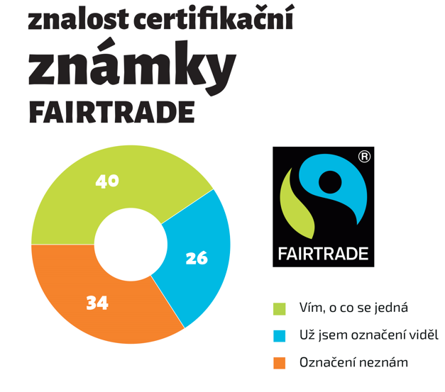 V květnu jsme si u společnosti Median opět nechali zpracovat průzkum, v němž jsme zjišťovali znalost certifikace Fairtrade a známky FAIRTRADE. Pokud jde o povědomí o známce FAIRTRADE, podle průzkumu ji zná 66 % českých spotřebitelů, 40 % respondentů uvedlo, že přesně ví, co toto označení znamená.