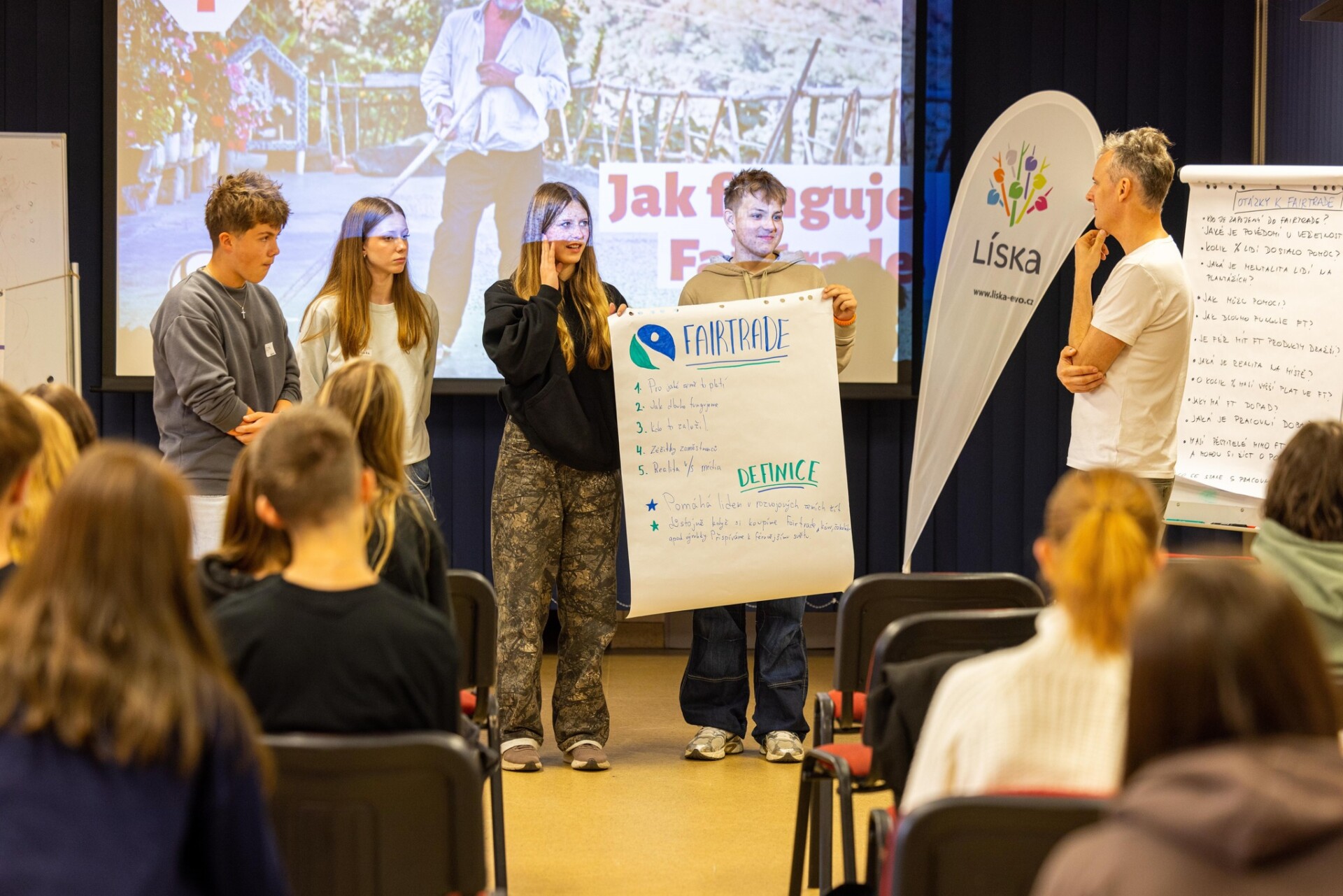 Společně s neziskovkou LÍSKA jsme uspořádali čtyřhodinový seminář “Vsetínské školy za lepší svět.” Studenti a studentky se věnovali tématu Fairtrade, podmínkám pěstování květin ve východní Africe i možnostem aktivně měnit věci kolem sebe.