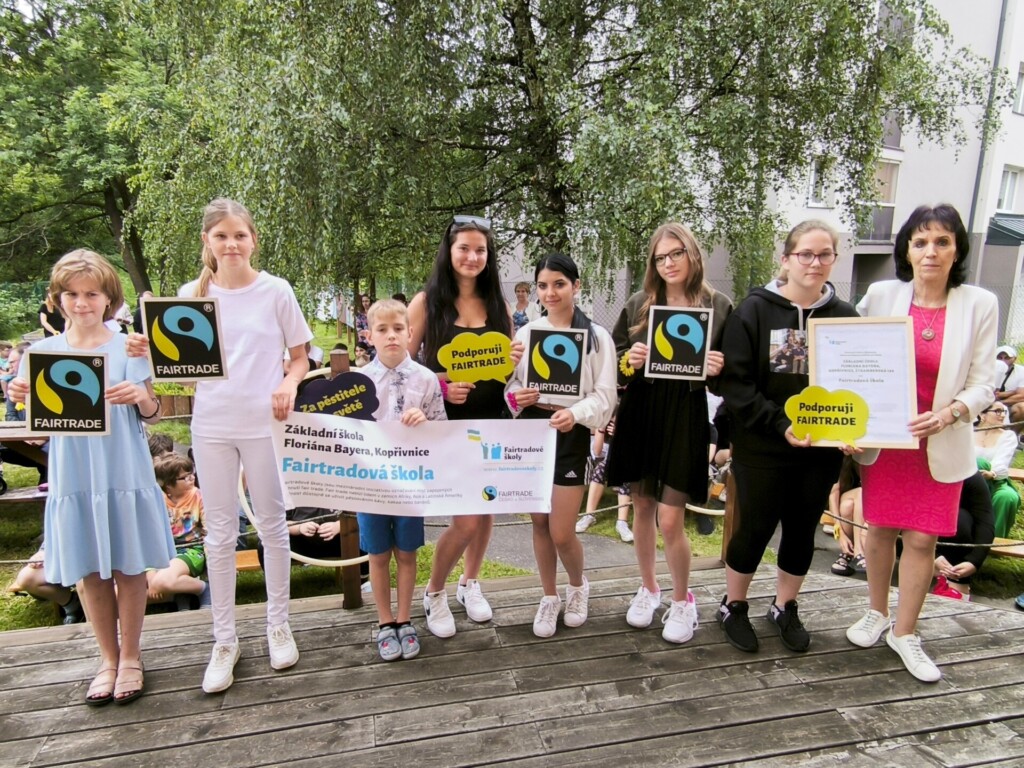 Kopřivnice, 20. června 2024 – Kopřivnická ZŠ se ode dneška může pochlubit titulem Fairtradová škola. Celorepublikově má u nás tento titul teprve 37 škol a celosvětově se zapojuje více než 2000 škol, které ve výuce i mimo ni podporují společenskou odpovědnost a ekologickou i sociální udržitelnost. Město Kopřivnice je zároveň nejmladším Fairtradovým městem, které se zapojilo oficiálně od roku 2023, a to i právě v úzké spolupráci se ZŠ Floriána Bayera. Fairtradové školy přidávají globální rozvojová témata do výuky, využívají fairtradové výrobky a aktivně pracují na informování veřejnosti.