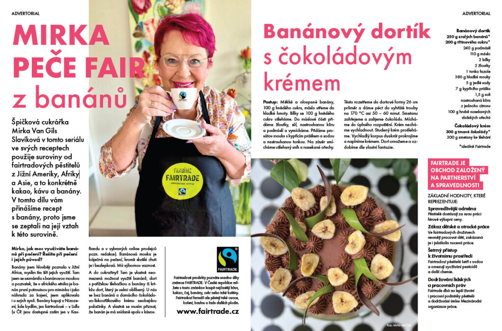 Cukrářka Mirka Van Gils Slavíková se zapojila do komunikační podpory Fairtrade na sociálních sítích a v novém seriálu v magazínu FOOD ve svých receptech peče ze surovin od fairtradových pěstitelů z Latinské Ameriky, Afriky a Asie, a to konkrétně z kakaa, kávy a banánů. Při této příležitosti jsme ji vyzpovídali, jaký je její vztah k surovinám.