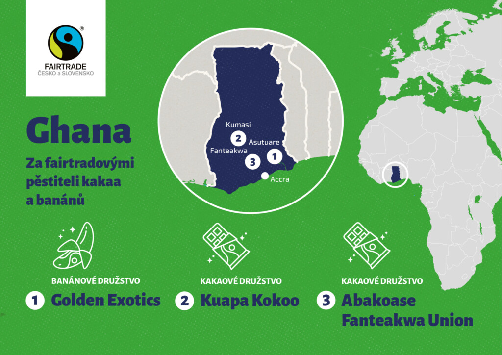 Hlavním cílem naší cesty bylo kakao, které je jednou z klíčových plodin západní Afriky a tvoří základ živobytí pro miliony drobných pěstitelů. Vzhledem k turbulencím s cenou kakaa na světových trzích jsme se vypravili v říjnu s malou skupinou českých novinářů a novinářek do Ghany, abychom poznali každodenní realitu pěstitelů a získali jejich perspektivu. Nejprve jsme ale začátek cesty věnovali tamnímu pěstování banánů.