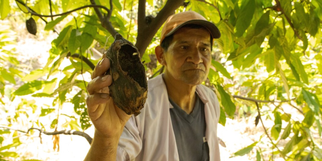 Po banánech jsme se přesunuli do kakaového družstva Norandino v Sierra de Piura. Zde jsme se dozvěděli, jak mohou vypadat různé nečekané dopady klimatické změny a tím ohrožovat živobytí pěstitelů. Místní pěstitel Angel Santos nám ukázal nakousaný kakaový bob a popisoval: „Veverky původně žily výše v horách, ale kvůli klimatické změně a měnícím se teplotám nemají dostatek potravy v jejich původním prostředí a staly se škůdcem na mém poli.”