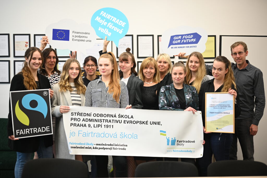 Střední odborná škola pro administrativu Evropské unie v Praze 9 se stala držitelem titulu Fairtradová škola. Celorepublikově se v ČR zapojuje do fairtradové kampaně 48 škol a celosvětově více než 2000, které ve výuce i mimo ni podporují společenskou odpovědnost a ekologickou i sociální udržitelnost. Certifikát dnes předal studentům a pedagogům školy zástupce neziskové organizace Fairtrade Česko a Slovensko, která kampaně Fairtradových škol a měst koordinuje. Zároveň se studenti zúčastnili přednášky s besedou o podmínkách fairtradových pěstitelů v Kostarice.