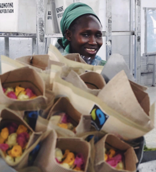 Jako další jsme v Keni navštívili květinovou farmu Longonot Farm. Viděli jsme, jak úsporně nakládají s vodou a pro zavlažování používají uzavřený cyklus vody s přírodními metodami čištění. Dozvěděli jsme se také, jak na této farmě využili peníze z fairtradového příplatku – mimo jiné na vybudování porodnice, školky nebo počítačové učebny, ale také na nákup pozemku, aby mohli svým zaměstnancům nabídnout dostupné bydlení. Longonot Farm přitom prodá pouze 10 % svých růží za podmínek Fairtrade, poptávka po fairtradových květinách totiž zatím není dostatečná. Což je škoda: představte si, co všechno by tu dokázali, kdyby prodali s fairtradovým příplatkem mnohem více svých růží.